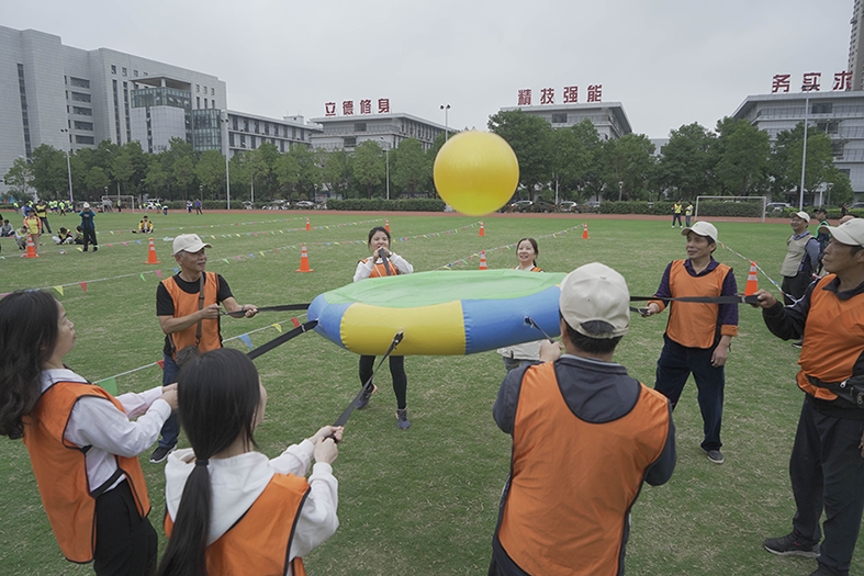 緊跟武漢軍運會熱點,本屆運動會以“迎軍運盛典,燃華太夢想”為主題,比賽項目豐富多彩,參與性強,除拔河、4*100m接力賽、羽毛球、乒乓球、籃球五項傳統比賽項目,還融入了青春無極限、跳動的青春、青春向前沖這三項極具參與性和觀賞性的趣味比賽。在這里,我們觸碰到跳躍的青春音符,感受到燃燒的活力,體會到四射的光芒。